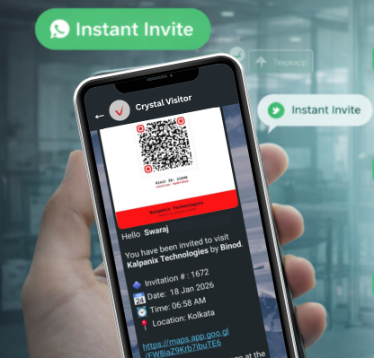 Crystal Visitor allows employees or hosts to send visitor invitations directly through WhatsApp. Visitors receive meeting details, visit date, entry instructions, and location information instantly on their mobile devices.